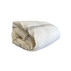 - Diseño a rayas en color marrón, azul marino y crudo / reversible en lino y algodón color crudo.